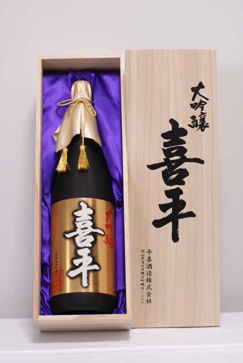 平喜酒造は、1928年(昭和3年)に創業者である平嶋屋喜平が、酒造りの原点である米と水を求めて鴨方に酒蔵を構えたことに始まります。現在は新蔵も含め、2万平米以上の敷地の広さで県下でも有数の規模を誇っています。代表銘柄は「喜平」。米は岡山の備前米「雄町」や「あけぼの」を使用しています。また水は蔵の北にある遙照山の花崗岩質に磨かれた水で仕込んでいます。この最高の素材で杜氏と蔵人たちが伝承の技を用い、心をひとつにして旨い酒造りに精を出しています。こうした伝統の技に加えて、最新の設備やテクノロジー等の技術も積極的に導入し、四季醸造などさらなる向上の研究にも全力を傾けています。また、人と酒と社会の調和にもこだわり続け、容器のリサイクルなど環境保全への取り組み、また開かれた企業でありたいと願う平喜酒造では随時、工場の見学会を受け付けています。毎年、春と夏には地域や愛飲家の人々をお招きして開く「打越し酒会」、「落語と美酒をきく会」、秋の「酒蔵ジャズコンサート」等で日本酒を味わっていただく場を設け、人と酒と社会とのいい関係づくりに取り組んでいます。